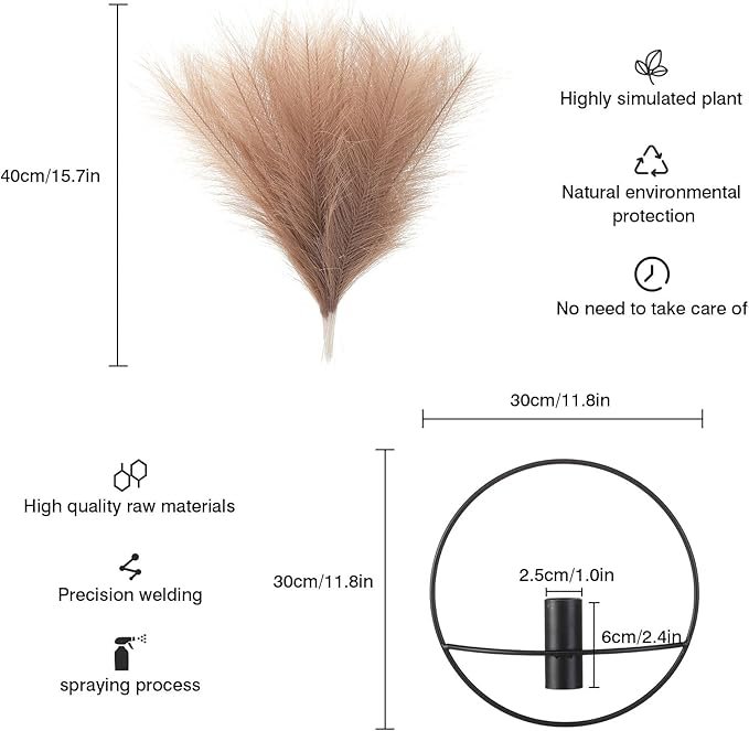 - [Retro and Modern]Perfect for a retro farmhouse vibe! Combine it with a dream catcher or tapestry for a bohemian flair. A round metal ring vase with artificial pampas grass can also enhance a modern American style. Adding artificial greenery can give your home a trendy and stylish touch