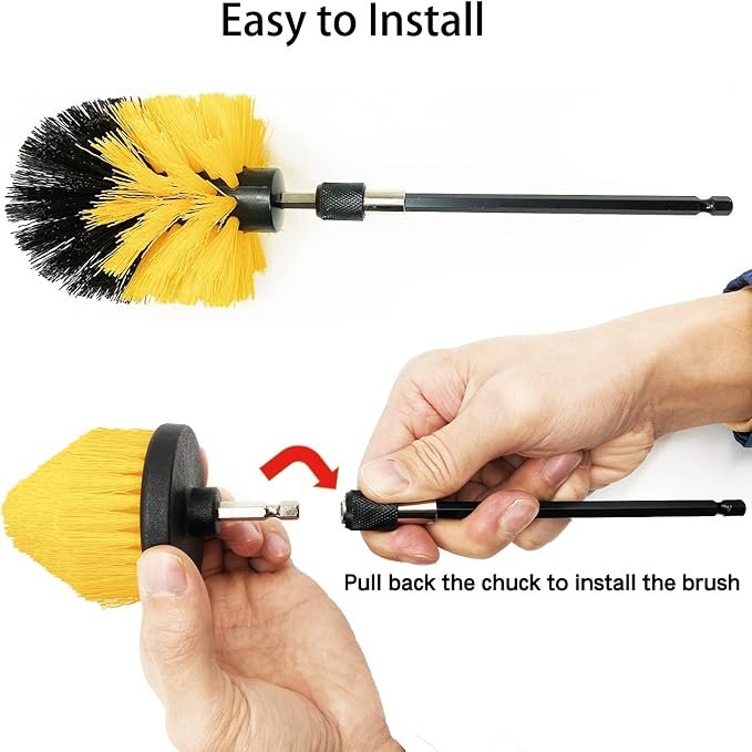 - 【1/4″ Quick Change Shaft】 Each drill scrub brush features a quarter-inch quick change shaft. The shafts are corrosion-resistant zinc/nickel coated, making them long-lasting and not easy to break. They can work with most power drills or drivers